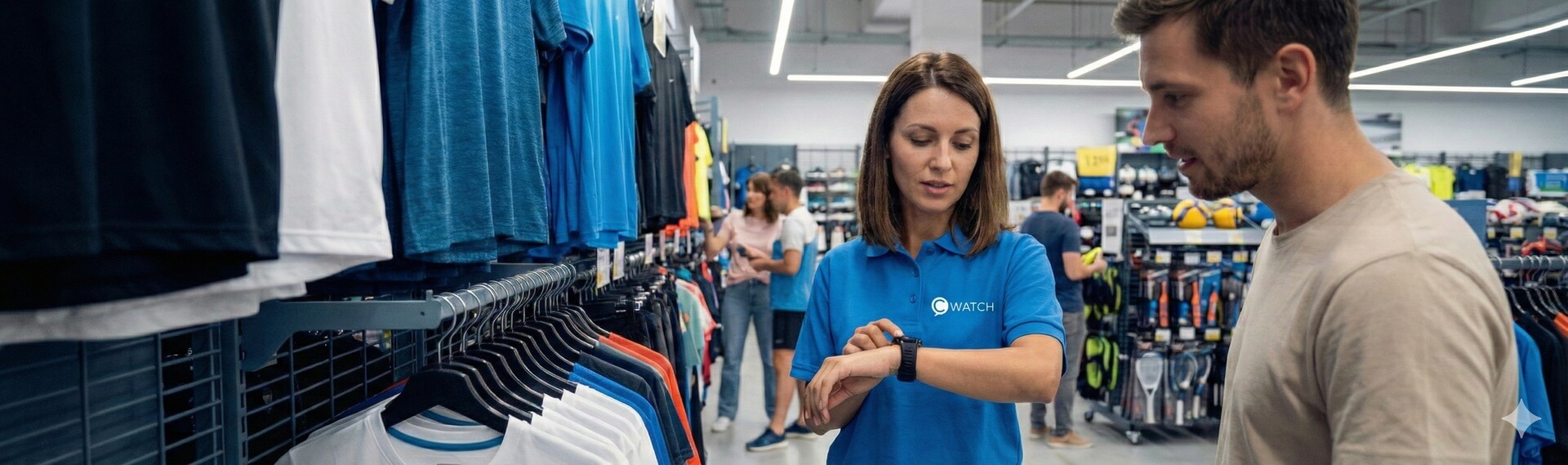 Employees verify stock, product details, or availability in other departments directly from the smartwatch, without walking away.